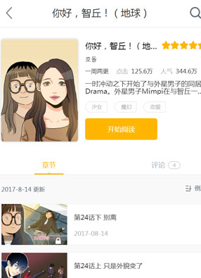 简介:《你好,智丘!》漫画简述:在这个看脸的时代,智丘并不是一个长得十分漂亮的人,因此一直以来,她只能默默站在人后,看着自己喜欢的人被别人追走,直到有一天,一个自称是外星人的男子出现在了她的面前,她一冲动之下,就开始了和外星人的同居。外星人直到智丘有想要实现的愿望,所以想要帮助她,却只能以外星人的观点判断,因此智丘的事情变得越来越复杂,这是愉快而细腻的揭露外貌主义至上的故事。