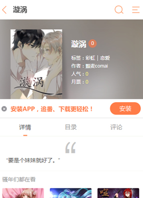 2025-07-26 22:24 开始阅读 微信阅读 简介:漫画《旋涡》讲述了他们是同父异母的兄弟,第一天见到他,他还是一个很小的婴儿,可是我就是对这个小婴儿一见钟情。很想一直守护者他长大,发现自己对他的感情不像之前那么纯粹。