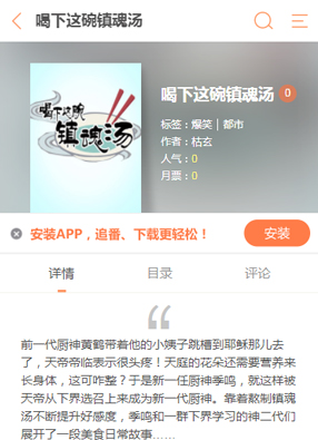 简介:漫画《喝下这碗镇魂汤》讲述了在天界上面准备所有人的饮食的是一代厨神黄鹤,但是呢,没想到,厨神居然带着她的小姨子就跳槽到了其他的神明哪里去了,于是天界一下子就乱了套,没有人来煮饭,这可是个大问题啊!没办法只能新招聘了新一代厨神,但是,这样的一位新厨师的拿手菜居然是镇魂汤!